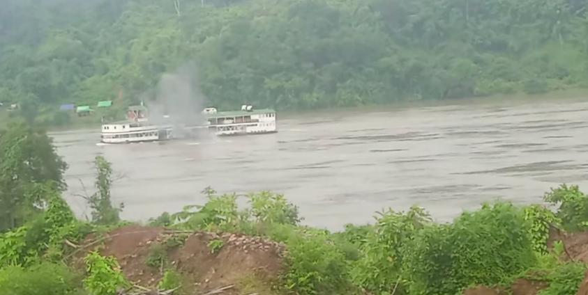 ရွှေကူကနေ ဆန်တက်လာတဲ့စစ်သင်္ဘော ပစ်ခတ်ခံရလို့ ပြန်ဆုတ်ခွာ