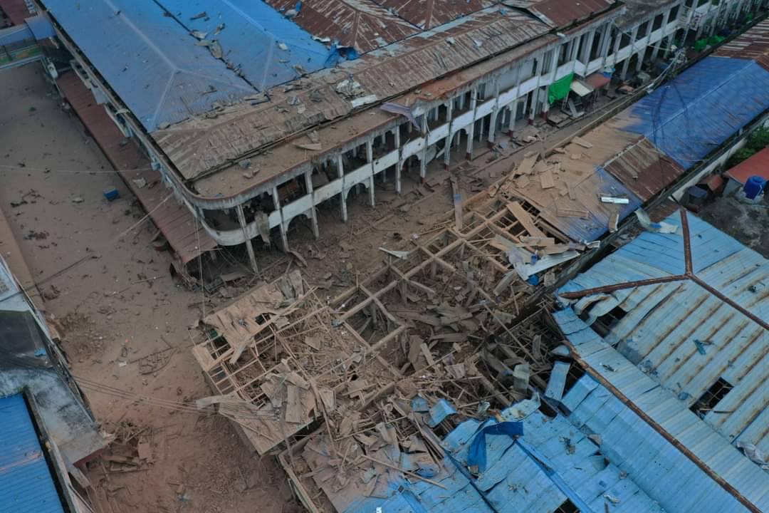 ဗုံးထိမှန်မှုကြောင့် နေအိမ်၊ အဆောက်အအုံ များစွာ ပျက်စီးခဲ့ရာ ပေါင် (၅၀၀) ဗုံး ၃ လုံး ထိမှန်ခဲ့သည့် မြို့မဈေးကြီး အတွင်းရှိ ဈေးဆိုင်ခန်းများစွာ ပျက်စီးဆုံးရှုံးခဲ့ကြောင်း ထုတ်ပြန်ချက်တွင် ဖော်ပြသည်။