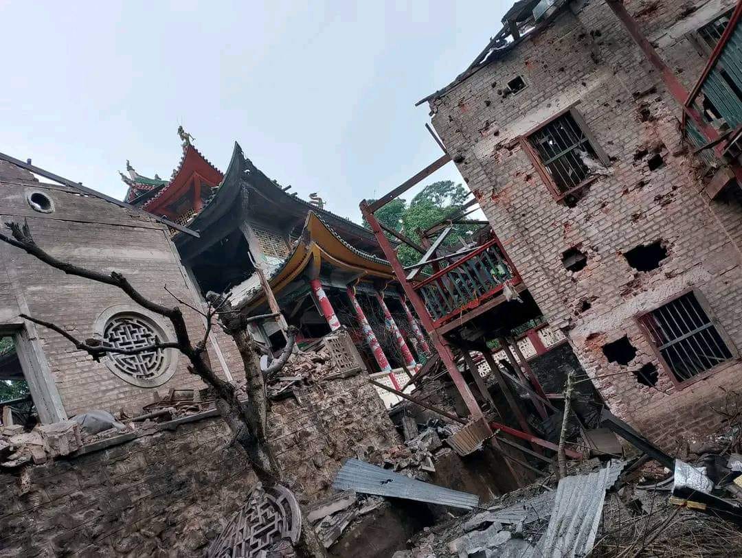 စစ်ကောင်စီတိုက်ခိုက်မှုကြောင့် တရုတ်ဘုန်းကြီးကျောင်းကြီးပျက်စီးခဲ့ရပြီး၊ နေအိမ်အဆောက်အအုံများ ပျက်စီးခဲ့သည့် အပြင် မြို့တွင်း အင်တာနက်လိုင်းများပြတ်တောက်သွားသည်ဟု သိရသည်။