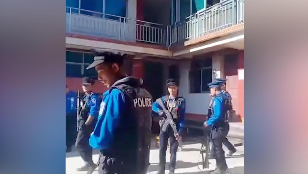 မဇ္ဓျိမက ရရှိထားသည့် ရုပ်သံမှတ်တမ်းများအရ KIO အစိုးရ၏ သက်မှတ်ယူနီဖောင်းဝတ်ရဲတပ်ဖွဲ့ဝင်များက ပန်ဝါမြို့တွင်း လှည့်လည်စစ်ဆေးနေသည်ကို တွေ့ရသည်။