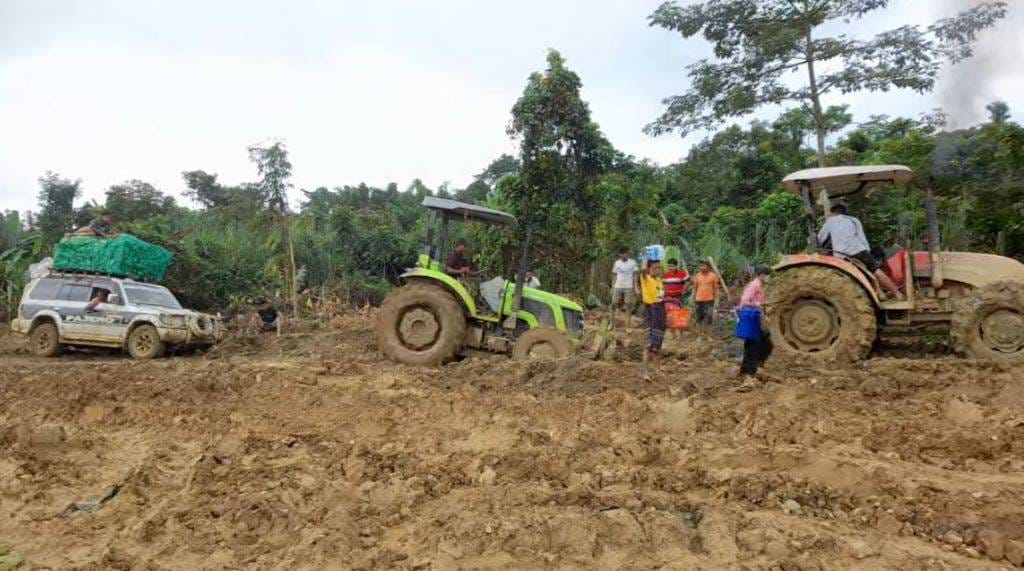 တနိုင်းလီဒိုလမ်းမတစ်လျှောက် ကားလမ်းဆိုးရွားစွာပျက်စီးနေပြီး ကုန်ကား၊ခရီးသည်ကားများ ဆင်နဲ့ဆွဲနေရ