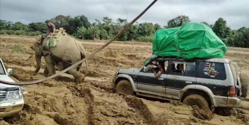 မြစ်ကြီးနား– တနိုင်းဆက်သွယ်ထားတဲ့ လီဒိုလမ်းမကြီး ဆိုးဆိုးရွားရွားပျက်စီးနေတာကြောင့် ခရီးသည်ကားနဲ့ ကုန်တင်ကားတွေကို ဆင်တွေနဲ့ဆွဲပြီး သွားလာနေရတယ်လို့ ခရီးသွားပြည်သူတွေက ပြောပါတယ်။