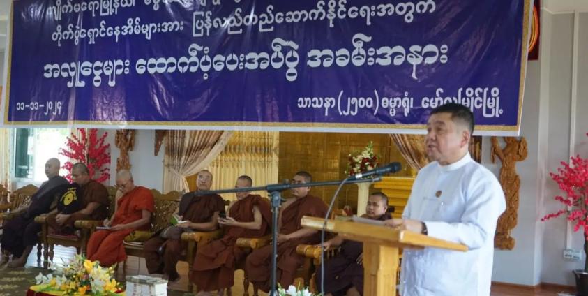 စစ်ကောင်စီခန့် မွန်ပြည်နယ် ဝန်ကြီးချုပ် ဦးအောင်ကြည်သိန်း ဦးဆောင်တဲ့အဖွဲ့ဟာ နိုဝင်ဘာ ၁၁ ရက်နေ့က ဓမ္မသကျေးရွာတိုက်ပွဲကြောင့် မီးလောင်ပျက်စီးသွားတဲ့ နေအိမ်အလုံး ၃၈၀ ပြန်ဆောက်နိုင်ဖို့အတွက်ဆိုပြီး သွပ်ဖိုးသိန်း ၂၁၀၀ ကျော် ထောက်ပံ့ကူညီခဲ့တယ်လို့ ထုတ်ပြန်ပါတယ်။