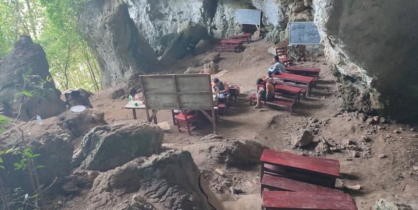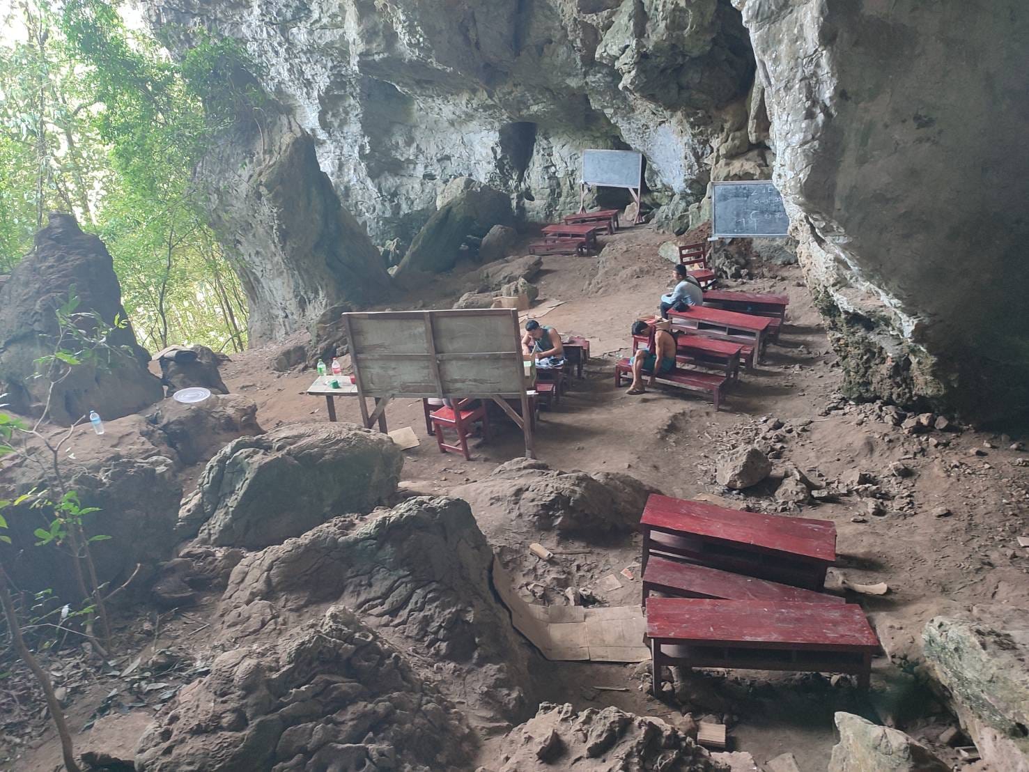 မေး။ ။ အခု ရွာအနီးနားက ကျောက်ဂူတွေထဲမှာ စာသင်နေရတာတွေ ရှိနေတယ်။ အဲ့ဒီအခြေအနေနဲ့ သူတို့ကို ဘယ်နှစ်တန်းထိသင်လဲ။ သင်ပေးနေတဲ့ ဆရာအခြေအနေလေးကို ပြောပြပေးပါ။