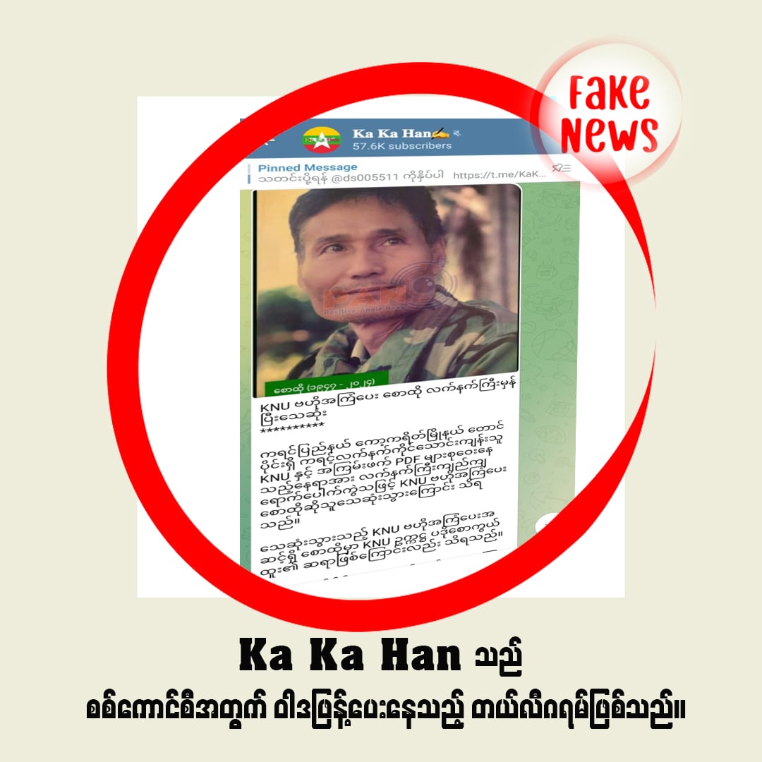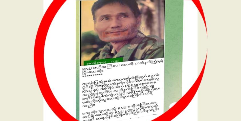 “ကရင်အမျိုးသားအစည်းအရုံး KNU ဗဟိုအကြံပေး စောထိုဆိုသူဟာ ကော့ကရိတ်မြို့တောင်ပိုင်းမှာ စစ်ကောင်စီတပ် ပစ်ခတ်လိုက်တဲ့ လက်နက်ကြီးကြောင့် သေဆုံးသွားပြီ ”ဆိုပြီး စစ်တပ်လော်ဘီတွေ သတင်းအမှားဖြန့်ချီနေပါတယ်။