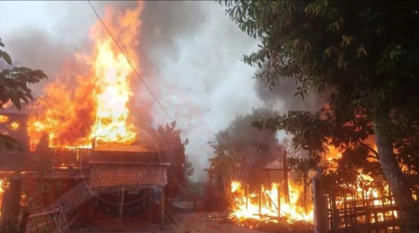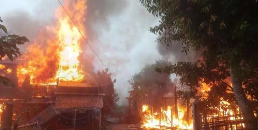Photo- စစ်တွေ တောကန်ရွာကို ယခုနှစ် ဇန်နဝါရီ ၁၄ ရက်နေ့က စစ်ကောင်စီတပ်ကမီးရှို့နေစဉ်။