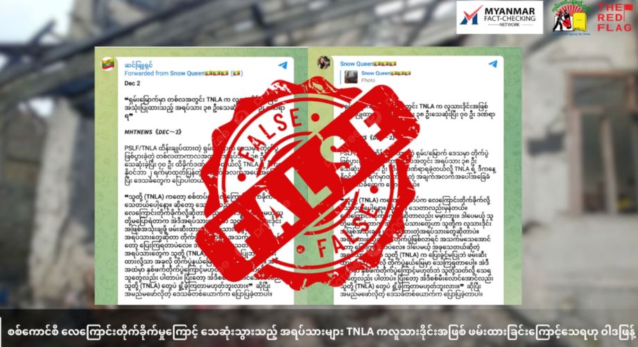 စစ်ကောင်စီအာပေး တယ်လီဂရမ် ဝါဒဖြန့်ချန်နယ်လ်တစ်ခုဖြစ်သည့် Snow Queen ချန်နယ်လ်မှ ဒီဇင်ဘာလ ၂ ရက်နေ့တွင် ဖြန့်ချိခဲ့ပြီး TNLA ထုတ်ပြန်သည့် အချက်အလက်အပေါ် အခြေခံကာ ဒေသခံများက ပြောပြခဲ့သည်ဟုဆိုပြီး ရေးသားဖြန့်ချိခဲ့သည်။