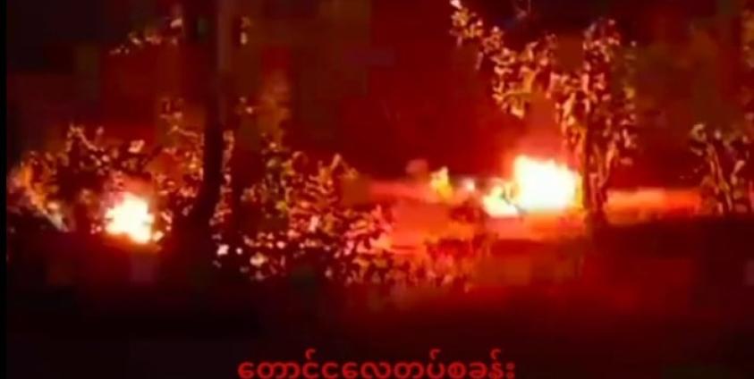 ပုံစာ - ဒီဇင်ဘာလ ၁၁ ရက် ညက တောင်ငူလေတပ်စခန်းနှင့် တောင်ပိုင်းတိုင်းစစ်ဌာနချုပ်ကို ၁၀၇ မမ များဖြင့် ပစ်ခတ်စဥ်။
