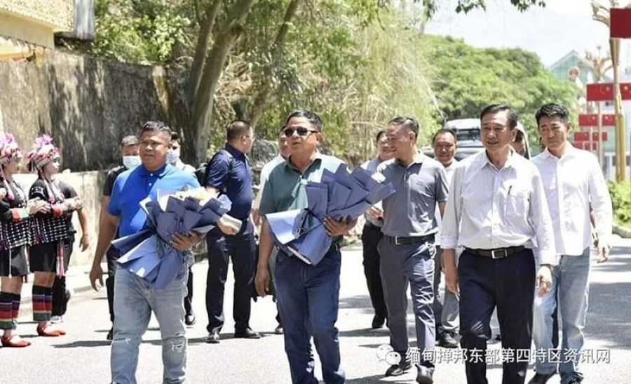 ၂၀၂၃ ခုနှစ်၊ မေလအတွင်းက စစ်ကောင်စီနှင့်တွေ့ဆုံရန် တိုင်းရင်းသားလက်နက်ကိုင်အဖွဲ့ ခေါင်းဆောင် အချို့ တရုတ် - မြန်မာနယ်စပ်သို့ ရောက်ရှိလာမှုအား တွေ့ရစဉ်။ ဓာတ်ပုံ - Mongla News