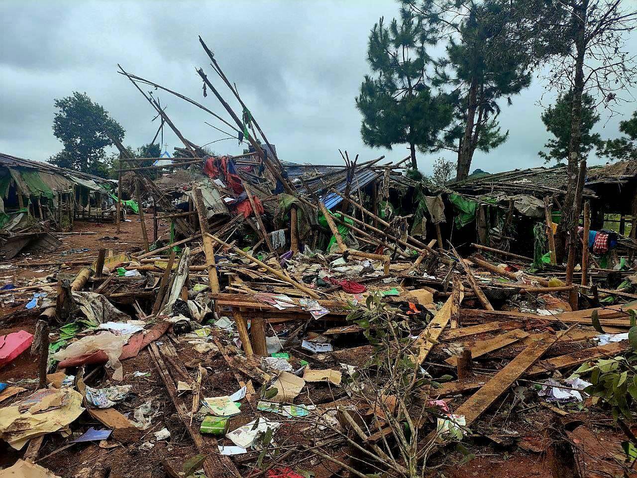 ၂၀၂၄ ခုနှစ် ၊ စက်တင်ဘာလ ၅ ရက်နေ့မှာ စစ်ကောင်စီရဲ့ လေကြောင်းတိုက်ခိုက်မှုကြောင့် ပျက်စီးသွားတဲ့ ရှမ်း - ကရင်နီ နယ်စပ်ရှိ ဘန်ကောက်စစ်ရှောင်စခန်း ပျက်စီးမှုမြင်ကွင်း