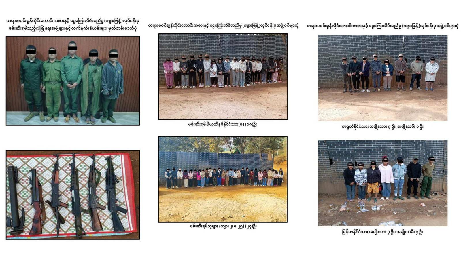 ၎င်းဖမ်းဆီးရမိသူများကို စစ်ကောင်စီဘက်မှ တရားစွဲဆို အရေးယူရန် စစ်ဆေးလျက်ရှိပြီး ဗီယက်နမ်နှင့် တရုတ်နိုင်ငံသားများကို သက်ဆိုင်ရာနိုင်ငံသို့ ပြန်လည်လွှဲပြောင်းပေးနိုင်ရေး ဆောင်ရွက်မည်ဖြစ်ကြောင်း ထုတ်ပြန်ချက်အရ သိရသည်။