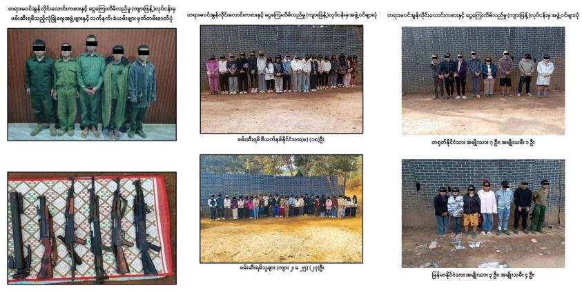 မိုင်းရယ်မြို့နယ် မိုင်းဟဒေသတွင် (၃) ရက်အတွင်း စစ်ကောင်စီတပ် ဝင်ရောက်ဖမ်းဆီးခဲ့သည့် ကျားဖြန့်ရုံများမှ တရုတ်နိုင်ငံသား အမျိုးသား (၂၇) ဦးနှင့် အမျိုးသမီး (၂) ဦး၊ ဗီယက်နမ်နိုင်ငံသား အမျိုးသမီး (၁၈) ဦး၊ မြန်မာနိုင်ငံသား အမျိုးသား (၅) ဦးနှင့် အမျိုးသမီး (၂၉) ဦး၊ စုစုပေါင်း (၈၁) ဦး ဖမ်းဆီးရမိခဲ့ကြောင်း စစ်ကောင်စီဘက်မှ ဖေဖော်ဝါရီ ၇ ရက်တွင် သတင်းထုတ်ပြန်သည်။