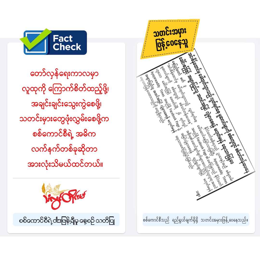 ဒီကနေ့မှာတော့ “အင်းစိန်အကျဉ်းထောင်မှ ခေါ်ထုတ်သွားတဲ့ လွတ်ရက်စေ့ မွတ်ဆလင်တွေကို စစ်သင်တန်းပေးတာ မရှိဘူး” ဆိုပြီး စစ်ကောင်စီဘက်က သတင်းအမှား ဖြန့်ချိနေတဲ့အကြောင်းကို စိစစ်ပေးသွားမှာ ဖြစ်ပါတယ်။
