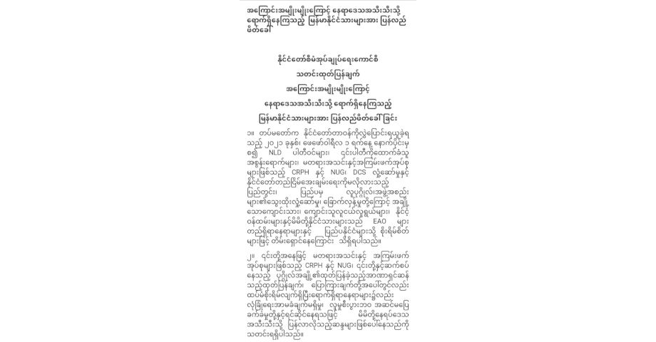 စစ်တပ် အာဏာသိမ်းသည့် ၂၀၂၁ ခုနှစ်၊ ဖေဖော်ဝါရီလ ၁ ရက်နေ့နောက်ပိုင်း ကျောင်းသား/ကျောင်းသူများ၊ လူငယ်လူရွယ်များ၊ နိုင်ငံ့ဝန်ထမ်းနှင့် နိုင်ငံသားများသည် တိုင်းရင်းသားလက်နက်ကိုင်အဖွဲ့အစည်းနယ်မြေနှင့် ပြည်ပနိုင်ငံသို့ စိုးရိမ်စိတ်ဖြင့် တိမ်းရှောင်သွားကြရသည်ဟု စစ်ကောင်စီက ထုတ်ပြန်ထားသည်။