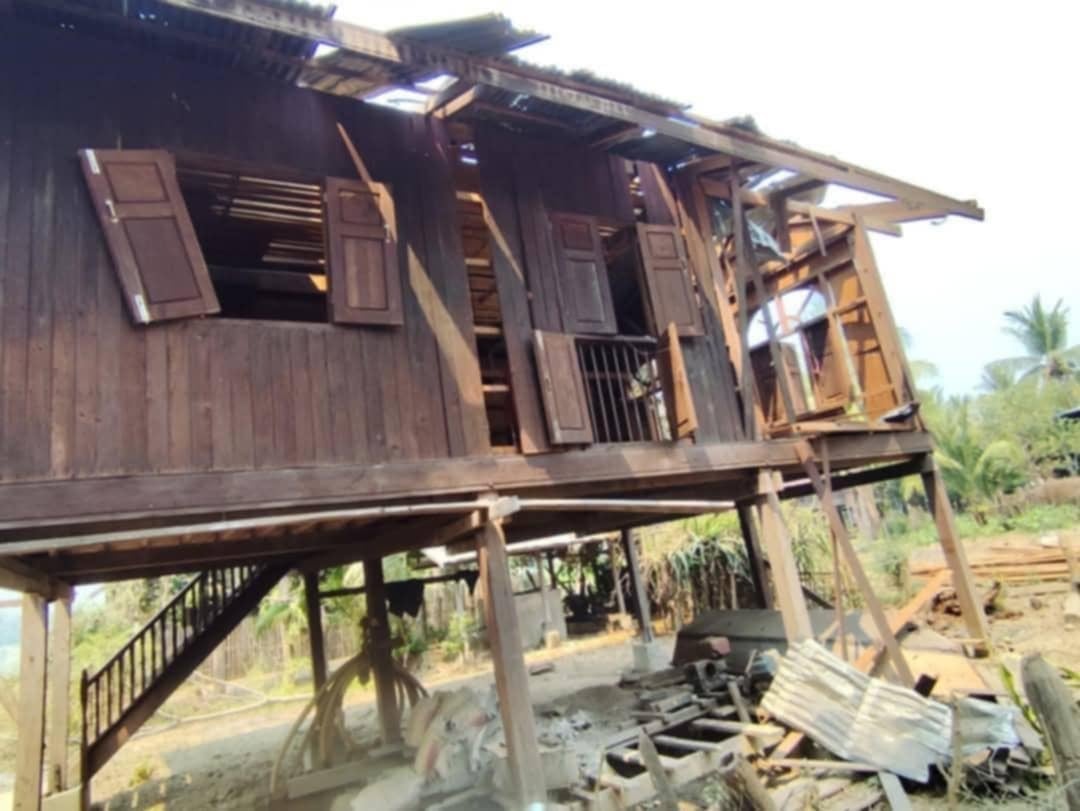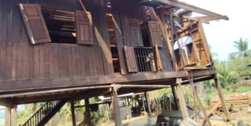 စစ်ကိုင်းတိုင်း၊ မင်းကင်းမြို့နယ်၊ ချင်းတွင်းမြစ်ရိုးအောက်ပိုင်းရှိ ဖက်ခတ်ကျေးရွာကို စစ်ကောင်စီတပ်က ဂျက်တိုက်လေယာဉ်ဖြင့် ယမန်နေ့က ဗုံးကြဲတိုက်ခိုက်ခဲ့ပြီးနောက် ပျက်စီးမှုမြင်ကွင်း။