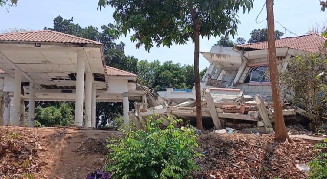 ပုံအညွှန်း – ငလျင်ကြောင့် ပြိုကျပျက်စီးခဲ့သည့် အထပ်လေးထပ်ရှိသည့် ဝန်ထမ်းအဆောက်အဦတခုအား ၂၀၂၅ ခုနှစ်၊ ဧပြီလ ၆ ရက်နေ့က တွေ့ရစဥ်