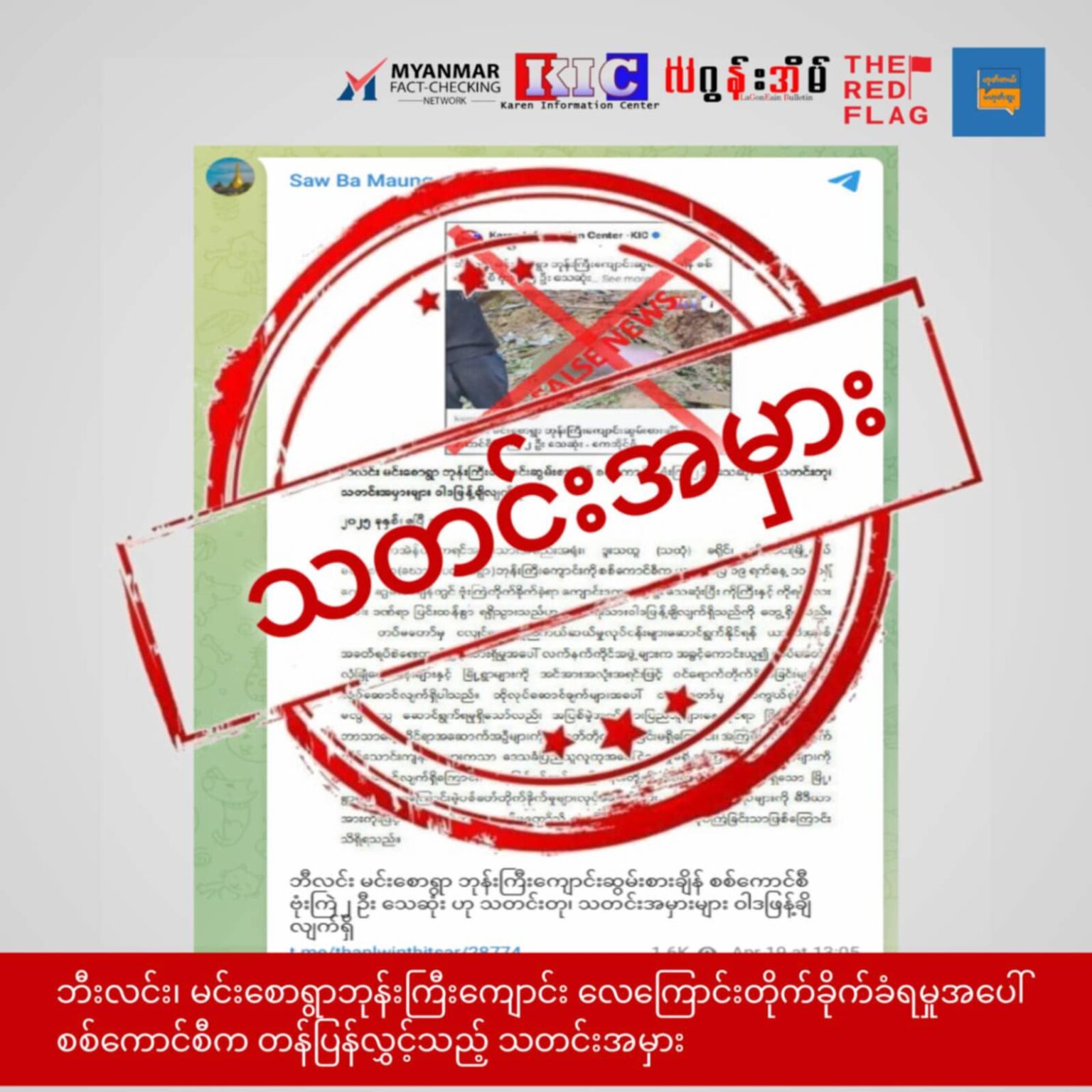 အဆိုပါရေးသားဖော်ပြချက်ကို Myanmar Fact-Checking Network အဖွဲ့ဝင် Lagon Eain, KIC, The Red Flag တို့မှ စိစစ်ချက်အရ သတင်းအမှားဖြစ်သည်။