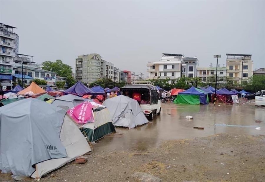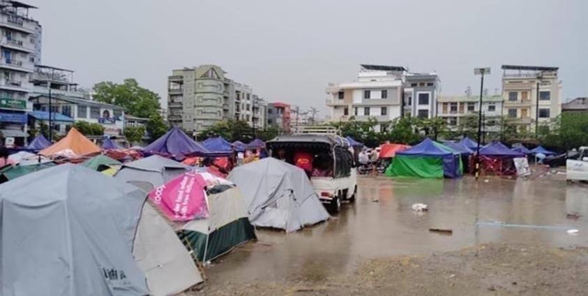 ယခုလအစောပိုင်းတွင် မိုးသည်းထန်စွာရွာသွန်းမှုကြောင့် မြန်မာနိုင်ငံတွင် ဒုတိယအကြီးဆုံးမြို့ဖြစ်သော မန္တလေးမြို့နှင့် အနီးတဝိုက်မှ ငလျင်ဒဏ်သင့်မိသားစုများအတွက် ထူထောင်ထားသည့် ယာယီစခန်းတခုတွင် ရေကြီးမှု ဖြစ်ပေါ်ခဲ့သည်။