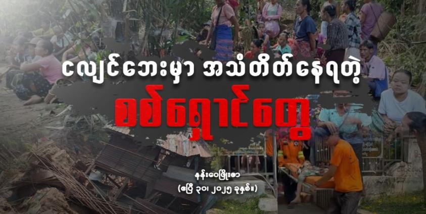 လက်ရှိ ငလျင်သင့်ဒေသတွေ ပြန်လည်ထူးထောင်ရေး အလှူငွေတွေ နိုင်ငံတကာက ပေးတာတွေ ရှိနေပေမဲ့လည်း စစ်ကြောင့် နေရပ်အိုးအိမ်စွန့်၊ လုပ်ငန်းတွေစွန့်ပြီး ရပ်တည်ရေးခက်ခဲနေတဲ့ စစ်ဘေးရှောင်တွေရဲ့ ဘဝတွေဟာ မျှော်လင့်ချက်မဲ့လို့ နေပါတော့တယ်။