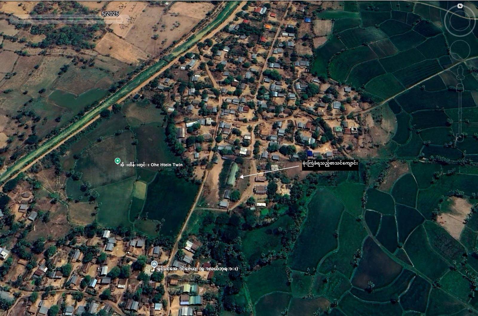 ဓာတ်ပုံ- စစ်ကိုင်းတိုင်း ဒီပဲယင်းမြို့နယ်ထဲက အိုးထိန်းတွင်းကျေးရွာကို စစ်ကောင်စီက ယမန်နေ့ (မေလ ၁၂ ရက်) နံနက် ၉ နာရီ ၄၀ မိနစ်အချိန် လေကြောင်းတိုက်ခိုက်ခံရမှုကြောင့် ညနေပိုင်းထိ ရရှိထားသည့် အချက်အလက်များအရ ကျောင်းသူ၊ ကျောင်းသား ၂၀ ဦးနှင့် ဆရာမ ၂ ဦး သေဆုံးသွားကြောင်း NUG က ပြောသည်။