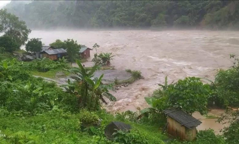တစ်ဖက်မှာ ကချင်ပြည်နယ်အထက်ပိုင်း မေခ၊ မလိခမြစ်စီးဆင်းရာဒေသမှာ မိုးသည်းထန်စွာ ရွာသွန်းခဲ့တာကြောင့် မြစ်ကြီးနားမြို့ရဲ့ ဧရာဝတီမြစ်ရေမြင့်တက်လာခဲ့ပြီး ဒီနေ့မနက်ပိုင်းအထိ စိုးရိမ်ရေအမှတ်ထက် ၂ လက်မအထိ ကျော်လွန်ရောက်ရှိခဲ့တာပါ။