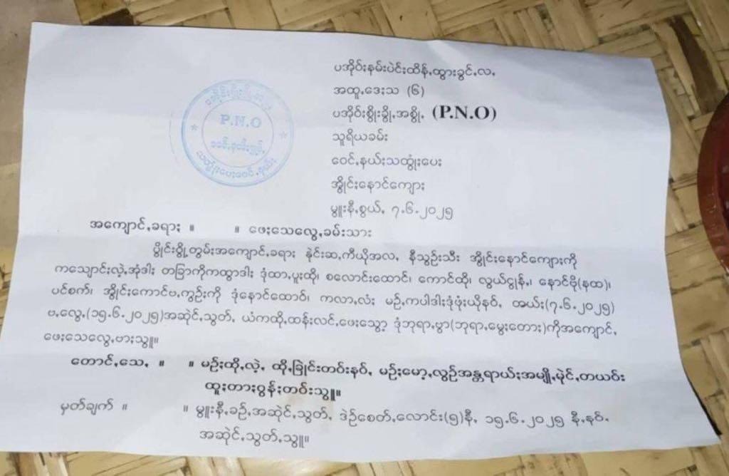 စစ်ကောင်စီလက်အောက်ခံဖြစ်တဲ့ PNO ပြည်သူ့စစ်ဟာ ဆီဆိုင်မြို့နယ်မှာ ရှိတဲ့ နောင်ကျောကျေးရွာအုပ်စုနဲ့ တောင်ရှေ့ကျေးရွာအုပ်စုက ပြည်သူ ၆ဝဝဝ ကျော်ကို ဇွန်လ ၁၅ ရက်နေ့နောက်ဆုံးထားပြီး ကျေးရွာအတွင်းမှ ထွက်ခွာသွားခိုင်းနေတယ်လို့ သိရပါတယ်။