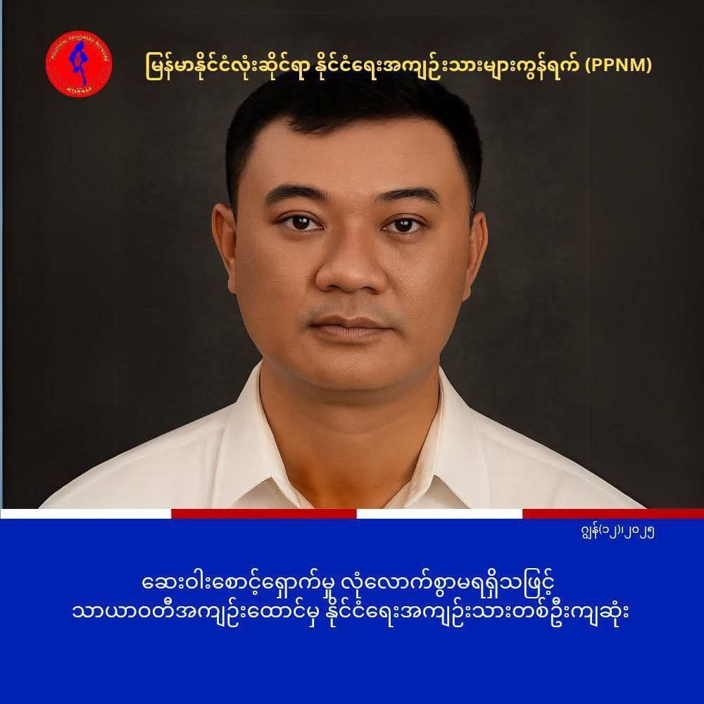 ရန်ကုန်တိုင်း၊ လှည်းကူးမြို့နယ်၊ လှည်းကူးမြို့မရဲစခန်းတွင် ပုဒ်မ ၅၀-ဈဖြင့် ထောင်ဒဏ် ၁၀ နှစ် ချမှတ်ခံထားရသူ အသက် ၄၈ နှစ်အရွယ် ဦးကျော်စိုးဦး (ခ) ဦးဇော် သေဆုံးခြင်းဖြစ်သည်ဟု မြန်မာနိုင်ငံလုံးဆိုင်ရာ နိုင်ငံရေးအကျဉ်းသားများကွန်ယက် PPNM က ထုတ်ပြန်သည်။