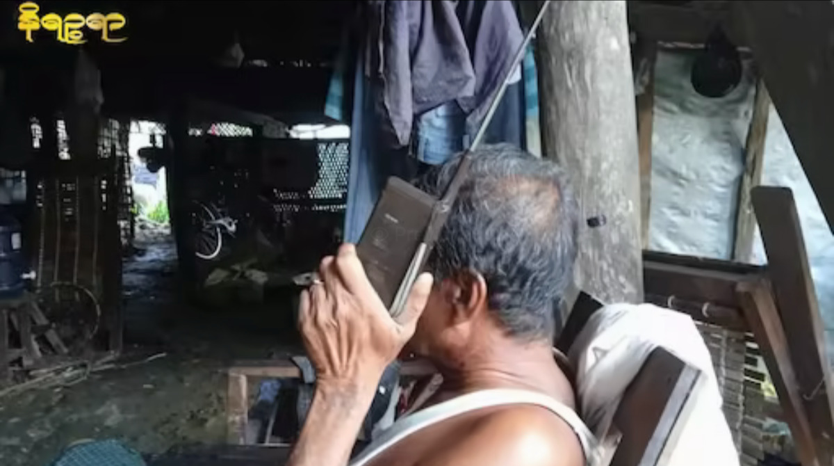 ရခိုင်မှ ရေဒီယိုနားထောင်နေသူတစ်ဦးအား ၂ဝ၂၄ ခုနှစ်၊ နိုဝင်ဘာလက တွေ့ရစဉ်။