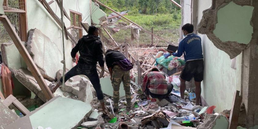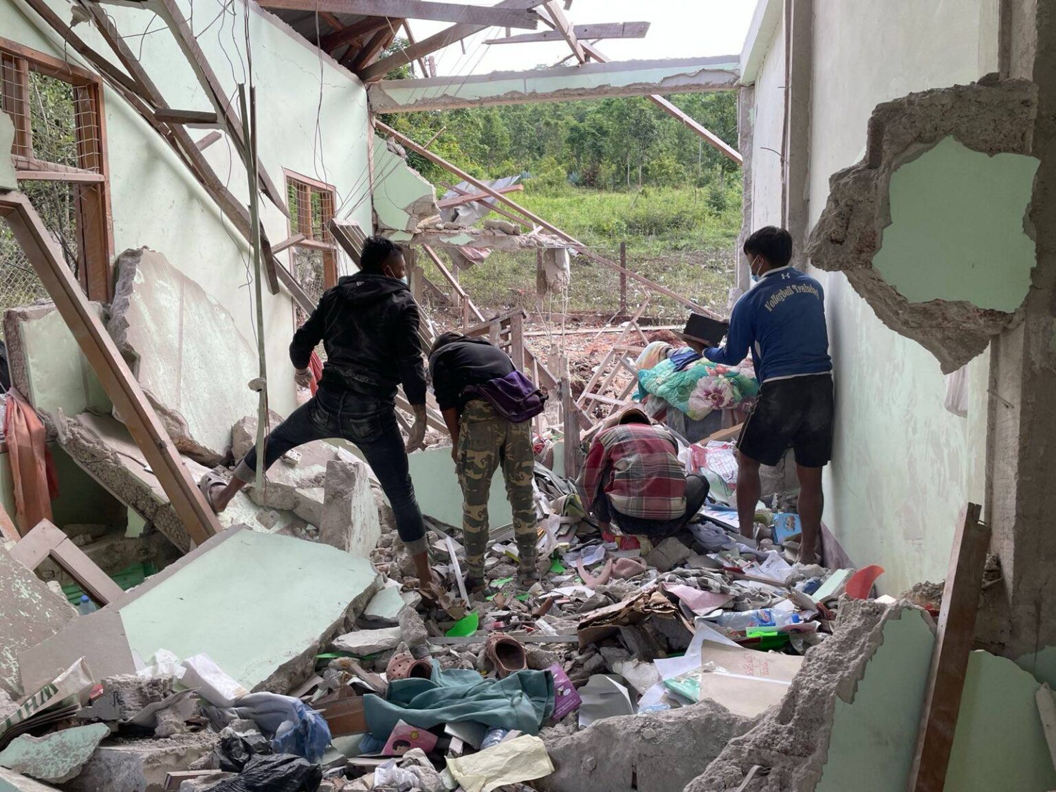 စစ်ကောင်စီက ဒုတိယအကြိမ်ကြဲတဲ့ နေရာမှာတော့ အဆောက်အဦး နှစ်လုံး ထိမှန် ပျက်စီးသွားပြီး ရေချိုးခန်း၊ အိမ်သာအပြင် ကားတစ်စီးလည်း ဗုံးစထိမှန်ခဲ့ပါတယ်။