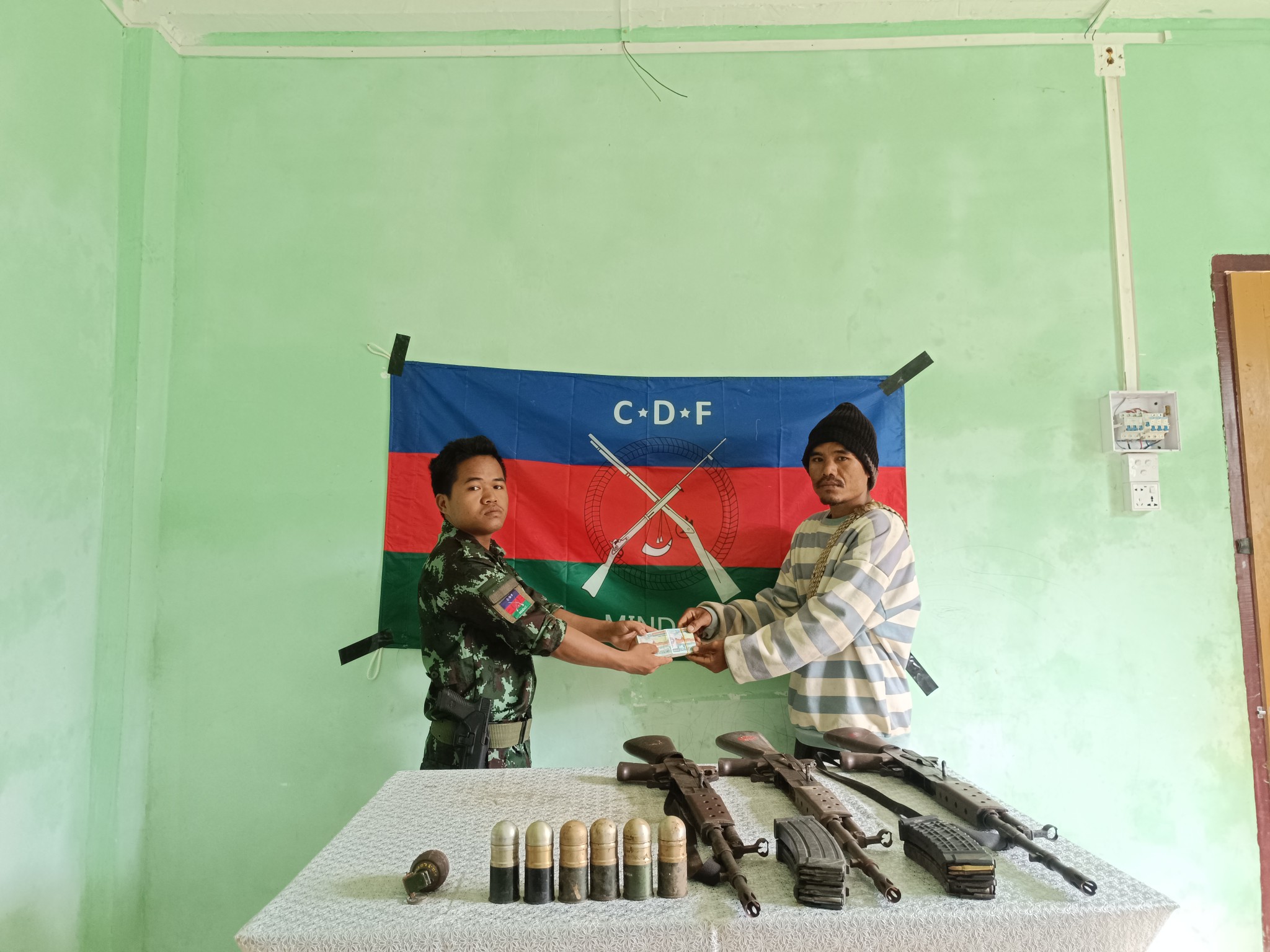 ချင်းတောင်ပိုင်း၊ မင်းတပ်မြို့နယ်အတွင်း စစ်ကောင်စီတပ်ဖွဲ့ဝင်များ မြေဖို့ ဝှက်ထားသော သေနတ် ၁၀ လက်နှင့် လက်နက်ခဲယမ်းများကို ဩဂုတ်လအတွင်း ဒေသခံပြည်သူများက CDF – မင်းတပ် စစ်ဦးစီးချုပ်ရုံးကို လာရောက် အပ်နှံထားသည်။