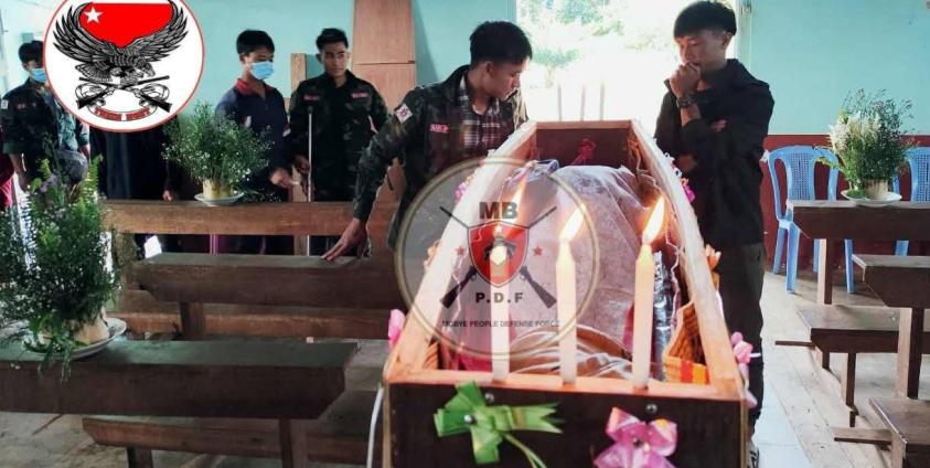 ကျဆုံးသွားတဲ့ ရဲဘော်ဟာ NUG လက်အောက်ခံ 1001 တပ်ရင်း၊ မိုးဗြဲ ပြည်သူ့ကာကွယ်ရေးတပ်၊MBPDF၊ သိမ်းငှက်တပ်ခွဲမှာ တာဝန်ထမ်းဆောင်နေတဲ့ တပ်စုမှူး မောင်နိုင်ထွန်း ဖြစ်ပြီး စျာပနကိုတော့ မိုးဗြဲမြို့ တနေရာမှာ မိသားစု၊ ဆွေမျိုးတွေနဲ့ အတူ ပြုလုပ်ပေးခဲ့တယ်လို့ မနေ့က စက်တင်ဘာလ ၂ ရက်နေ့မှာ မိုးဗြဲ PDF သိမ်းငှက်တပ်ခွဲက အသိပေးထုတ်ပြန်ထားပါတယ်။