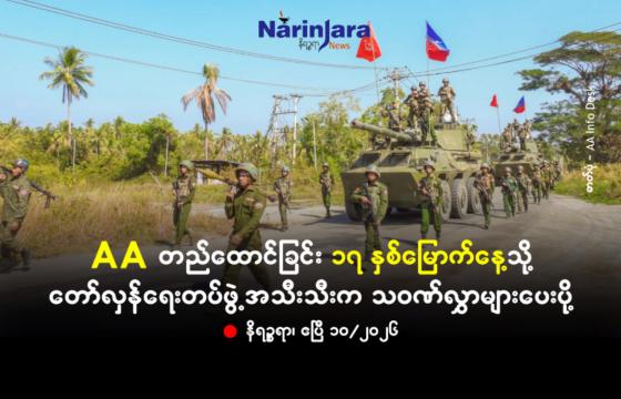 တိုက်ပွဲဖြစ်ပွားနေသည့် ရခိုင်ပြည်၊ကျောက်ဖြူမြို့နယ်မှ နယ်ဖက်သွားသည့် စက်လှေများပေါ်မှ အမျိုးသမီးများအပါအဝင်၂၃ ဦးကို အကြမ်းဖက်စစ်တပ်၏စစ်ရေယာဉ်တစ်စီးမှ ဖမ်းဆီးသွားကြောင်း သတင်းရရှိသည်။