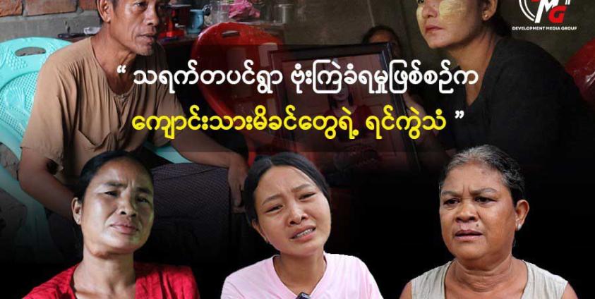 ညီမလေး ဘာမှ မပူနဲ့။ ၁၂ တန်းအောင်အောင်ပဲ ကြိုးစားဆိုပြီး အားပေးထားတာ။ စာပဲ ကြိုးစားခိုင်းထားတာ။ ဒါပေမဲ့ အခုအချိန်မှာ သူတို့(စစ်ကောင်စီ) ရက်စက်မှုကြောင့် အဖြစ်ဆိုးနဲ့ ညီမလေး ဆုံးသွားတယ်။ ညီမလေးမှာ မျှော်လင့်ချက်တွေ အများကြီး ရှိခဲ့တယ်။ ညီမလေးမဆုံးခင် ဒဏ်ရာတွေနဲ့ အော်နေခဲ့သေးတယ်လို့ သူ့သူငယ်ချင်းက ပြောပြတယ်။ အမေ၊ အမေ ဆိုပြီး လှေကားမှာ မှီပြီး အော်နေခဲ့တာ။ သူ့သူငယ်ချင်းက ပြောပြတာ။ သူလည်း အခု သူ့သူငယ်ချင်းကို မကယ်နိုင်ခဲ့လို့ဆိုပြီး အခုထိ နောင်တရနေတယ်။ ညီမလေးက သူ အရမ်းနာတယ်။ ရွာသားတွေ ကယ်ကြပါလို့ အော်နေခဲ့တယ်။ အိမ်အနီးမှာသာ ဖြစ်ခဲ့တာဆိုရင် ကျမတို့ ကယ်လိုက်နိုင်မှာ။ အသက်ရှင်ခဲ့မှာ။ မရှိတဲ့ကြားက မိသားစုတွေ ဝိုင်းဝန်းပြီး ပညာသင်ပေးထားတာ။ ပညာတတ်ဖြစ်မြောက်ဖို့ အချိန်ကို ရောက်ခါနီးမှ ညီမလေးကို ဆုံးရှုံးရတယ်။ ဒါတွေဟာ တရားရဲ့လားလို့ ကျမတို့ဘက်က ဝင်ကြည့်ပေးကြပါ။