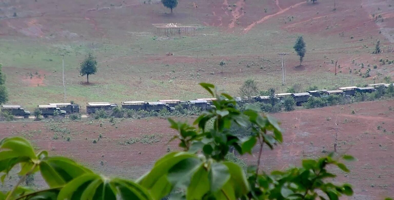 အဆိုပါ စစ်ယာဉ်တန်းဟာ ဒီးမော့ဆိုမြို့နယ်ဘက်ကနေ ဖရူဆိုမြို့နယ်ဖက်ကို ဦးတည်လာတာ ဖြစ်တယ်လို့ တော်လှန်ရေးတပ်ဖွဲ့တွေက ပြောပါတယ်။