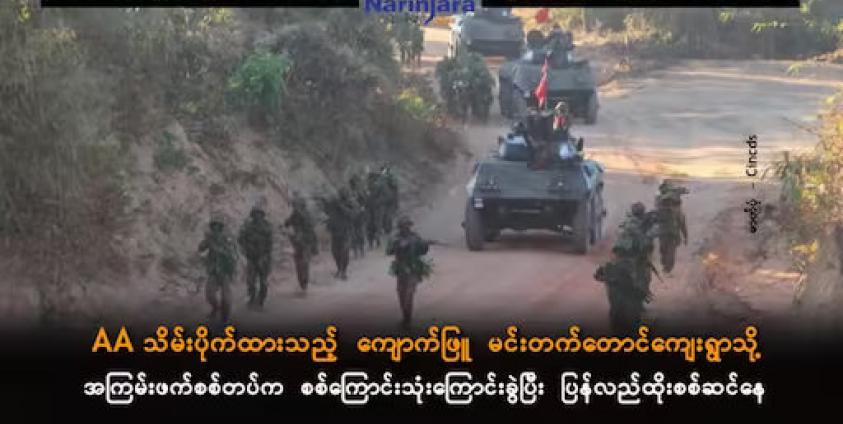 ရခိုင်ပြည်၊ ကျောက်ဖြူမြို့နယ်ရှိ အာရက္ခတပ်တော်(AA) သိမ်းပိုက်ထားသည့် မင်းတက်တောင်ကျေးရွာ တစ်ခုလုံးကို သိမ်းပိုက်ရရှိရန် အကြမ်းဖက်စစ်တပ်က စစ်ကြောင်းသုံးကြောင်းခွဲပြီး ပြန်လည် ထိုးစစ်ဆင်နေကြောင်း သတင်းရရှိသည်။