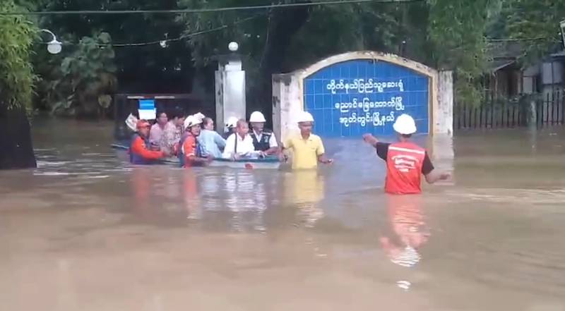 ပဲခူးတိုင်း၊ တောင်ငူခရိုင်၊ အုတ်တွင်းမြို့နယ်၊ ညောင်ခြေထောက်ကျေးရွာတွင် တောင်ကျ ရေစီးဝင်မှုကြောင့် ဆေးရုံဝန်းအတွင်း ပိတ်မိနေသည့် လူနာ ၂၀ ကျော်ကို အရေးပေါ်ရွှေ့ပြောင်းပေးခဲ့ရကြောင်း ရင်ခုန်သံ