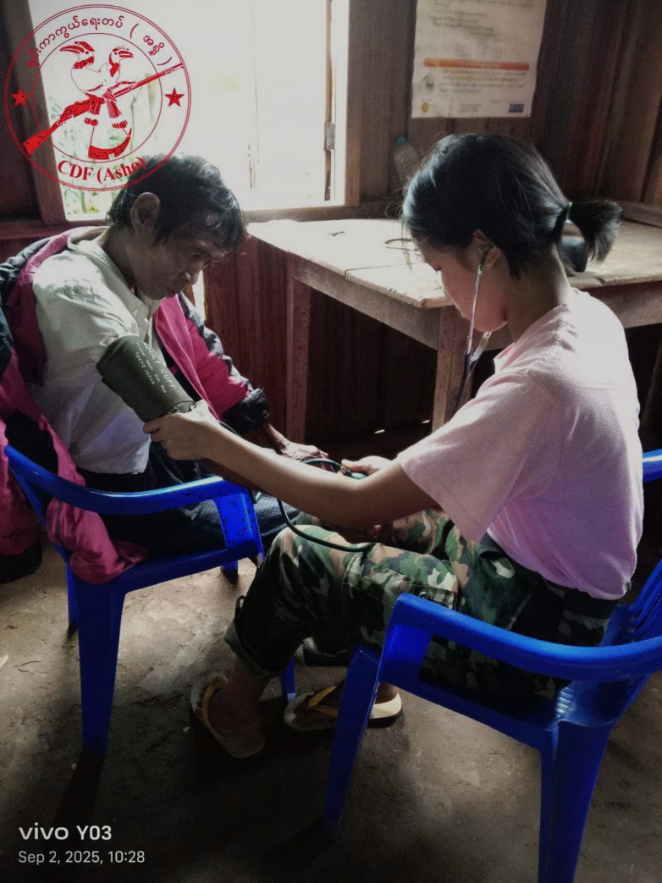 “ပြီးခဲ့တဲ့လ ကုသမှု ပေးခဲ့ရတဲ့ လူနာတွေထဲမှာ အများဆုံးက ရာသီတုပ်ကွေးတွေ အဖြစ်များကြပါတယ်။ အဓိကက လမ်းခရီးခက်ခဲမှုနဲ့ ဆေးဝါးမလုံလောက်မှုတွေတော့ အနည်းငယ်ရှိခဲ့ပါတယ်၊၊ သက်ကြီးရွယ်အိုနဲ့ ကလေးတွေကတော့ ၄၀ ရာခိုင်နှုန်းလောက်ရှိပါမယ်၊၊ အကျဉ်းသားတွေထဲမှာလည်း ရာသီတုပ်ကွေး၊ ငှက်ဖျား၊ ရိုးရိုးဖျားနာ၊ ထိခိုက်ရှနာ စတာတွေကြောင့် ကုသပေးခဲ့ရတာတွေလည်း ရှိပါတယ်” ဟု CDF - အရှို၊ ဆေးဌာနမှူး မိုင်းအိုင်ယူက ပြောသည်။
