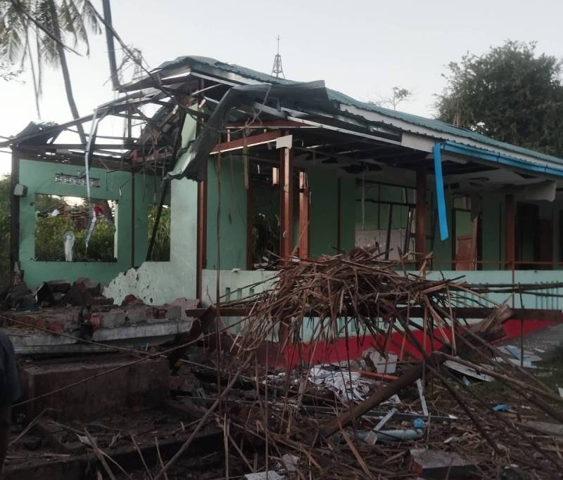 စစ်ကော်မရှင်လေတပ်က ကြဲချသွားသည့် ဗုံးများသည် စာသင်ကျောင်းပေါ်သို့ ကျရောက် ပေါက်ကွဲခဲ့သည့်အတွက် ထိခိုက်သေဆုံးမှု များပြားခဲ့ခြင်းဖြစ်ပြီး စာသင်ကျောင်းဆောင်အပါအဝင် အဆောက်အဦး သုံးလုံးလည်း ပျက်စီးသွားကြောင်း သိရသည်။