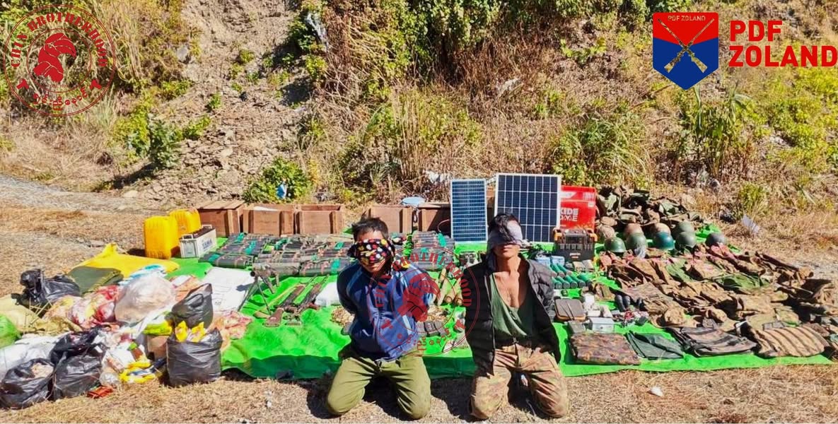 PDF – Zoland ၏ ထုတ်ပြန်ချက်တွင် စစ်သုံ့ပန်း ၂ ဦးကို ဖမ်းဆီးရမိပြီး လက်နက်ငယ် ၃ လက်၊ ခဲယမ်းအများအပြားနှင့် စစ်အသုံးအဆောင်ပစ္စည်းများကို သိမ်းဆည်းရမိကြောင်း ဓါတ်ပုံများနှင့်တကွ ထုတ်ပြန်ထားသည်။