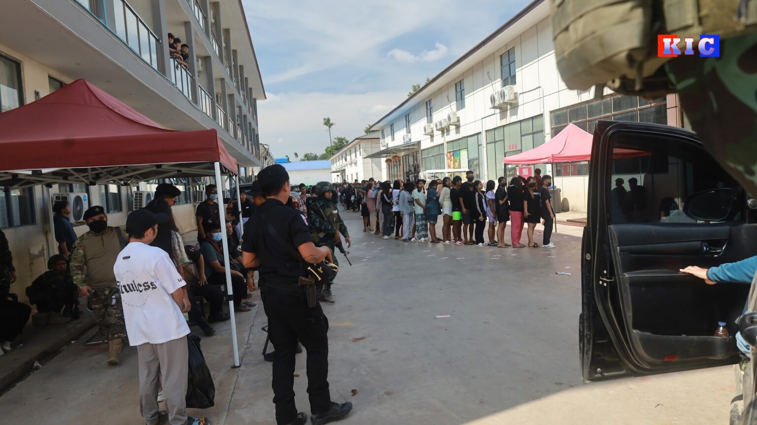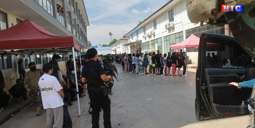 ကရင်ပြည်နယ်၊ မြဝတီမြို့တောင်ပိုင်း၊ မင်းလက်ပံကျေးရွာရှိ Shunda Park ငွေလိမ်ခြံဝန်းအတွင်း နယ်စပ်ဖြတ်ကျော် နေရပ်မပြန်လိုသည့် ကျားဖြန့်လုပ်သားများကို နယ်မြေလုံခြုံရေးအခြေအနေကြောင့် ၎င်းတို့ကိုယ်ပိုင်အစီအစဉ်ဖြင့် ဝန်းမှထွက်ခွာခွင့်ပြုထားရကြောင်း ကေအဲန်ယူ-ကရင်အမျိုးသားအစည်းအရုံးထံ မှ သိရသည်။