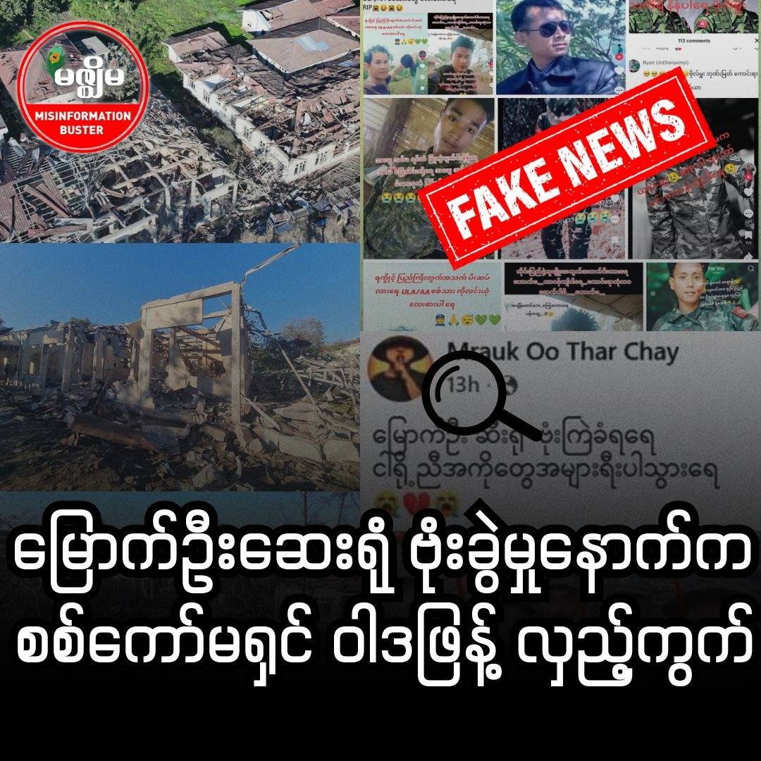 တဖန် သေဆုံးသူများသည် AA တပ်သားများဖြစ်ကြောင်း ပုံပေါ်စေရန် အထက်တွင် ဖော်ပြခဲ့သည့် သတင်းတုများ၊ မတိကျ မခိုင်လုံသည့် အချက်အလက်များဖြင့် သေဆုံးသည့် တပ်သားပုံများအဖြစ် ဖော်ပြကြသည်။