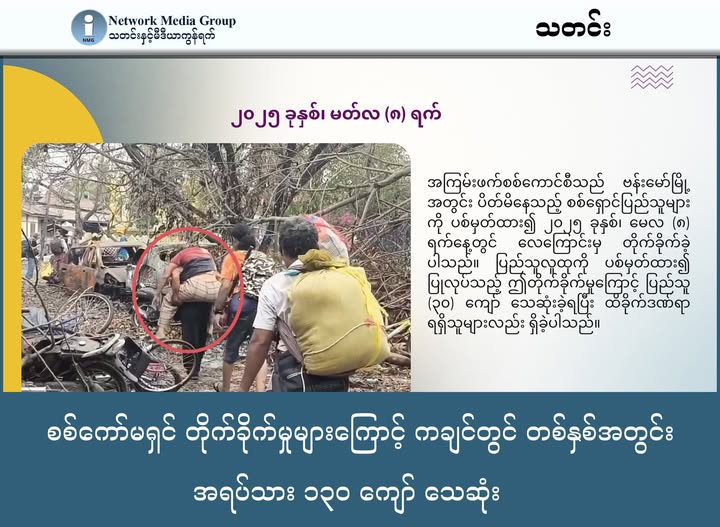 ကချင်ပြည်အတွင်း ၂၀၂၅ ခုနှစ် တစ်နှစ်တာကာလအတွင်း စစ်ကော်မရှင်တပ်၏ လေကြောင်းနှင့် လက်နက်ကြီး တိုက်ခိုက်မှုများကြောင့် အပြစ်မဲ့အရပ်သား ၁၃၀ ကျော် သေဆုံးခဲ့ရကြောင်း ကချင် လူ့အခွင့်အရေး စောင့်ကြည့် အဖွဲ့ (KHRW) က ဇန်နဝါရီလ ၇ ရက်နေ့တွင် ထုတ်ပြန်သည့် နှစ်စဉ်အစီရင်ခံစာတွင် ဖော်ပြထားသည်။