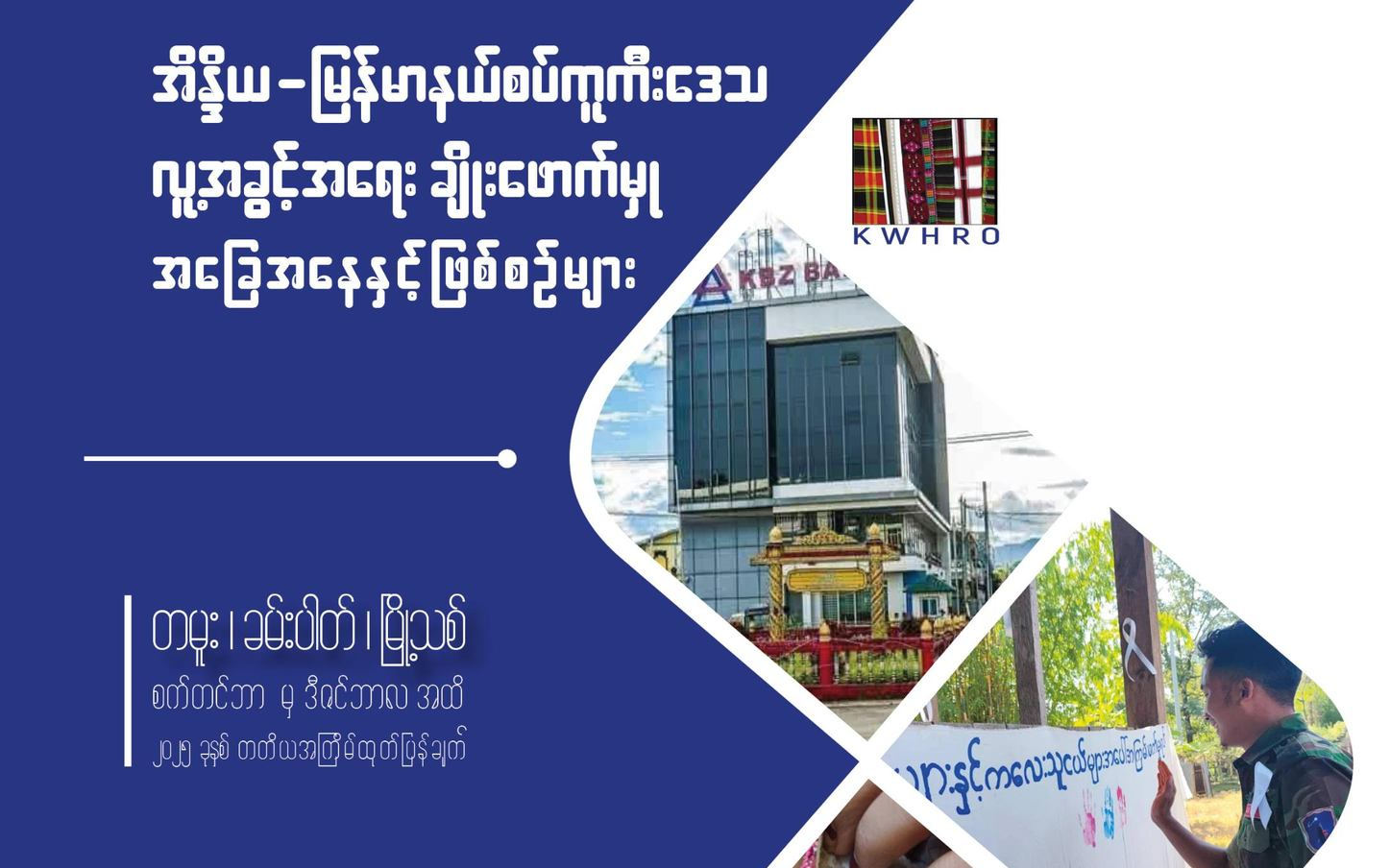 ကူကီးအမျိုးသမီးများ ဆိုင်ရာလူ့အခွင့်အရေးအစည်းအရုံးသည် အိန္ဒိယ-မြန်မာနယ်စပ် တမူးခရိုင်အတွင်း မြင့်တက်နေ သည့် တိုက်ပွဲများအကြား ဒေသခံပြည်သူများကြုံတွေ့နေရသော လူ့အခွင့်အရေးချိုးဖောက်မှု၊ ဒေသအခြေအနေများ နှင့် အထူးသဖြင့် အမျိုးသမီးများကြုံတွေ့နေရသော အခက်အခဲများတင်ပြထားသည့် ၄ လတစ်ကြိမ်ထုတ်ဝေသော အစီရင်ခံစာကို ဇန်နဝါရီ ၁၀ ရက်နေ့က ထုတ်ပြန်ခဲ့သည်။