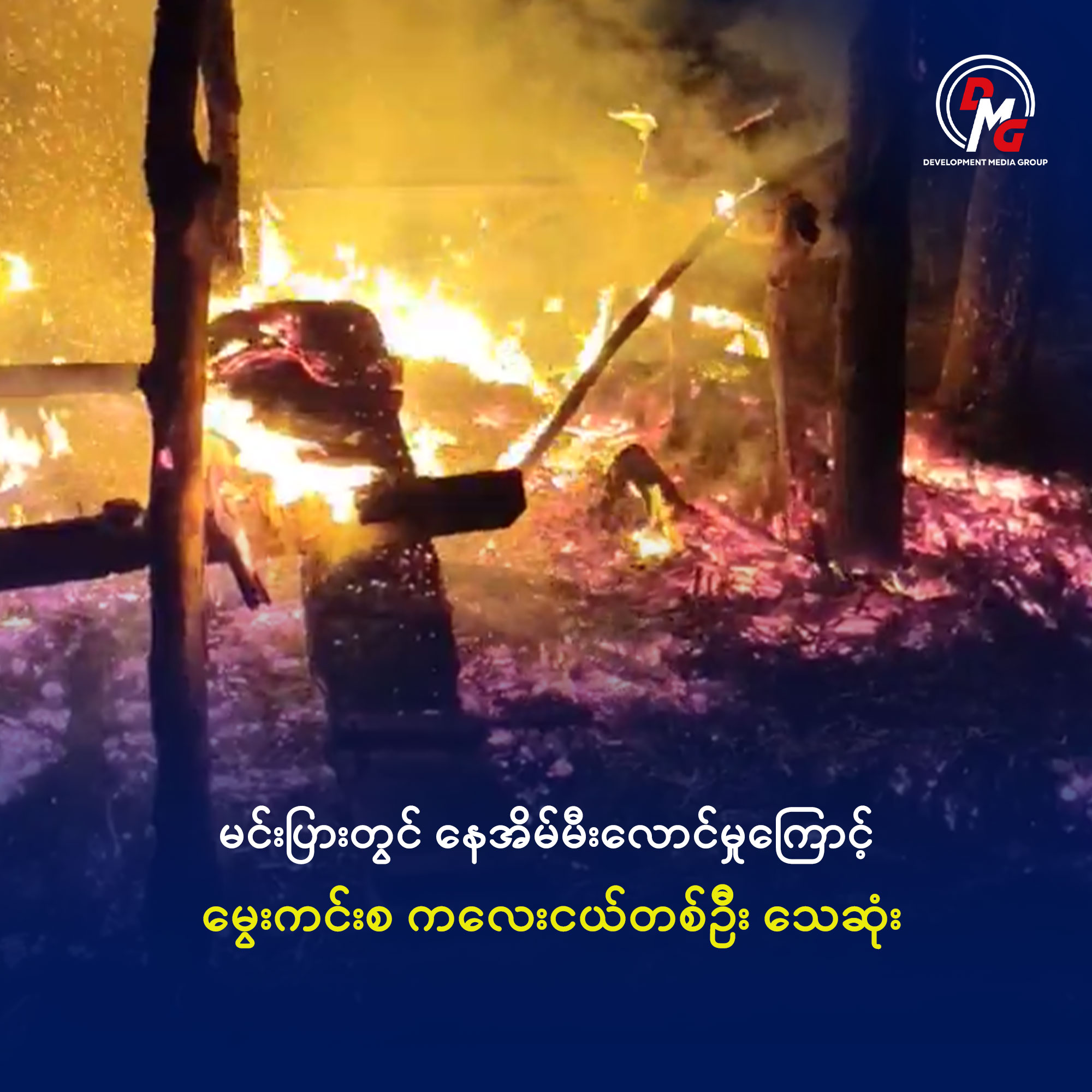 ရခိုင်ပြည် မင်းပြားမြို့နယ်၊ နော်နော် (မွတ်ဆလင်) ကျေးရွာတွင် မီးလောင်မှုကြောင့် မွေးကင်းစကလေးငယ် တစ်ဦး သေဆုံးသွားကြောင်း သိရသည်။