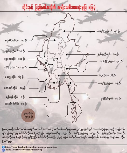 မြန်မာနိုင်ငံမှာ အာဏာသိမ်း စစ်ကော်မရှင် လက်ချက်ကြောင့် ၂၀၂၅ ခုနှစ်၊ တစ်နှစ်တာအတွင်း အမျိုးသမီး (၇၉၂) ဦးသေဆုံးခဲ့ရတဲ့အထဲ ချင်းပြည်နယ်က အမျိုးသမီး (၈) ဦးလည်း ပါဝင်တယ်လို့ မြန်မာ့အမျိုးသမီးသမဂ္ဂ(BWU) ရဲ့ ဇန်နဝါရီလ ၁၅ ရက်နေ့ ထုတ်ပြန်ချက်အရ သိရပါတယ်။