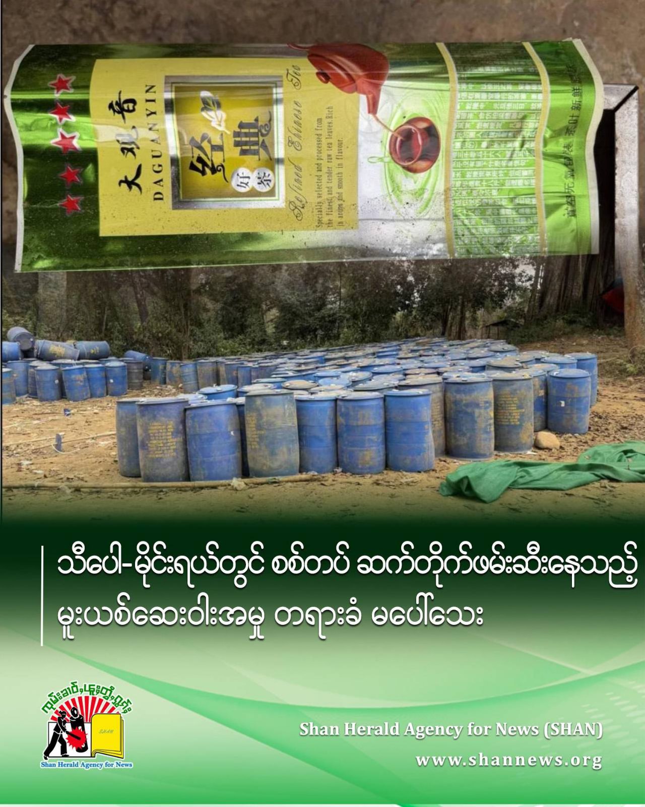 သျှမ်းပြည် သီပေါနှင့် မိုင်းရယ်မြို့နယ်တွင် မူးယစ်ဆေးဝါး ချက်လုပ်သည့်နေရာများနှင့် အသုံးပြုသည့် ပစ္စည်းများကို စစ်ကော်မရှင်ဘက်မှ ဆက်တိုက်ရှာဖွေ ဖမ်းဆီးနေသော်လည်း တရားခံ မပေါ်သေးကြောင်း စုံစမ်းသိရသည်။