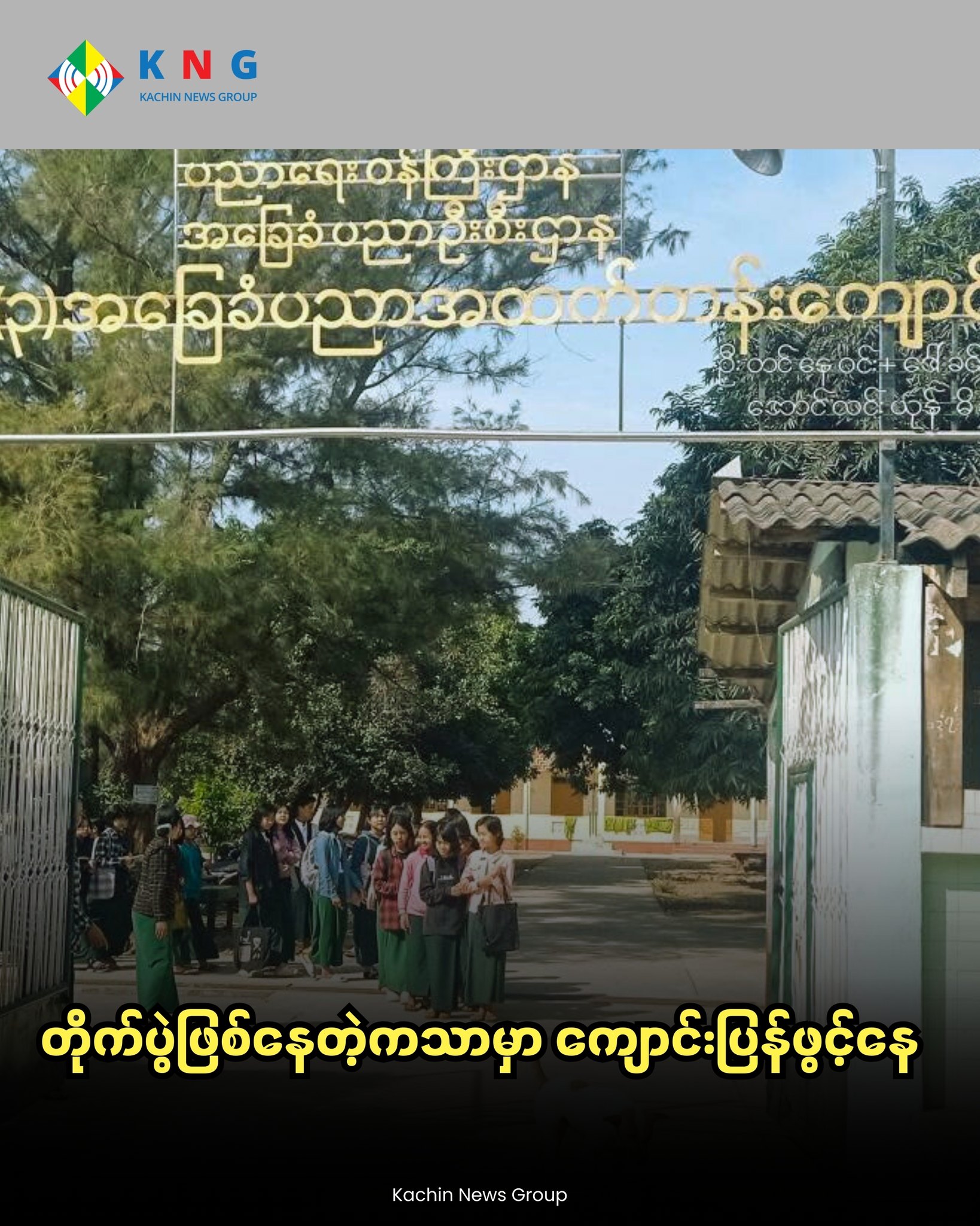 ကသာမြို့ပေါ်မှာရှိတဲ့ အထက်တန်းကျောင်း ၃ ခုပေါင်းပြီးတော့ အမှတ် ၃ အထက်တန်းကျောင်းမှာ ဖွင့်လှစ်နေတာလို့ ကသာမြို့ခံတစ်ဦးက ပြောပါတယ်။