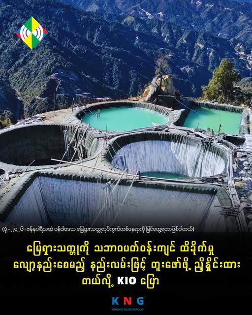 ဂျာဘောက်ရာ — ကချင်လွတ်လပ်ရေးအဖွဲ့ KIO ထိန်းချုပ်နယ်မြေ ချီဖွေ၊ ပန်ဝါမြို့ရှိ မြေရှားသတ္တုတွေကို တူးဖော်ရာမှာ သဘာ၀ပတ်ဝန်းကျင် ထိခိုက်ပျက်စီးမှု လျော့နည်းအောင် ထိန်းသိမ်းကာကွယ်တဲ့ နည်းလမ်းနဲ့ တူးဖော်သွားဖို့ တရုတ်ကုမ္ပဏီတွေနဲ့ သဘောတူညီမှု ရယူထားတယ်လို့ KIO ဘက်က ပြောပါတယ်။
