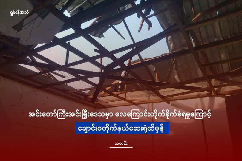 မိုးညှင်းမြို့နယ် အင်းတော်ကြီးဒေသရှိ ချောင်းဝကျေးရွာမှာ မနေ့က ဇန်နဝါရီ ၂၆ ရက် မနက်(၁)နာရီဝန်းကျင်အချိန်တွင် စစ်တပ်ရဲ့လေကြောင်းတိုက်ခိုက်မှုကြောင့် တိုက်နယ်ဆေးရုံလည်း ထိမှန်ခဲ့တယ်လို့ ဒေသခံများထံမှ သိရပါတယ်။