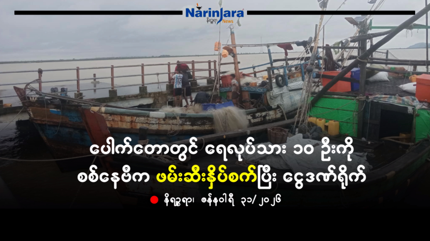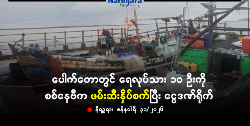 သဉ္ဇာနွယ် — ရခိုင်ပြည်၊ ပေါက်တောမြို့နယ်ရှိ ပင်လယ်ပြင်တွင် ငါးဖမ်းထွက်သည့် ရခိုင်ဒေသခံ ရေလုပ်သား ၁၀ ဦးကို စစ်ကော်မရှင်ရေတပ်၏ နေဗီတစ်စီးက ဖမ်းဆီးနှိပ်စက်ပြီး ငွေဒဏ်ရိုက်ခဲ့ကြောင်း သတင်းရရှိသည်။